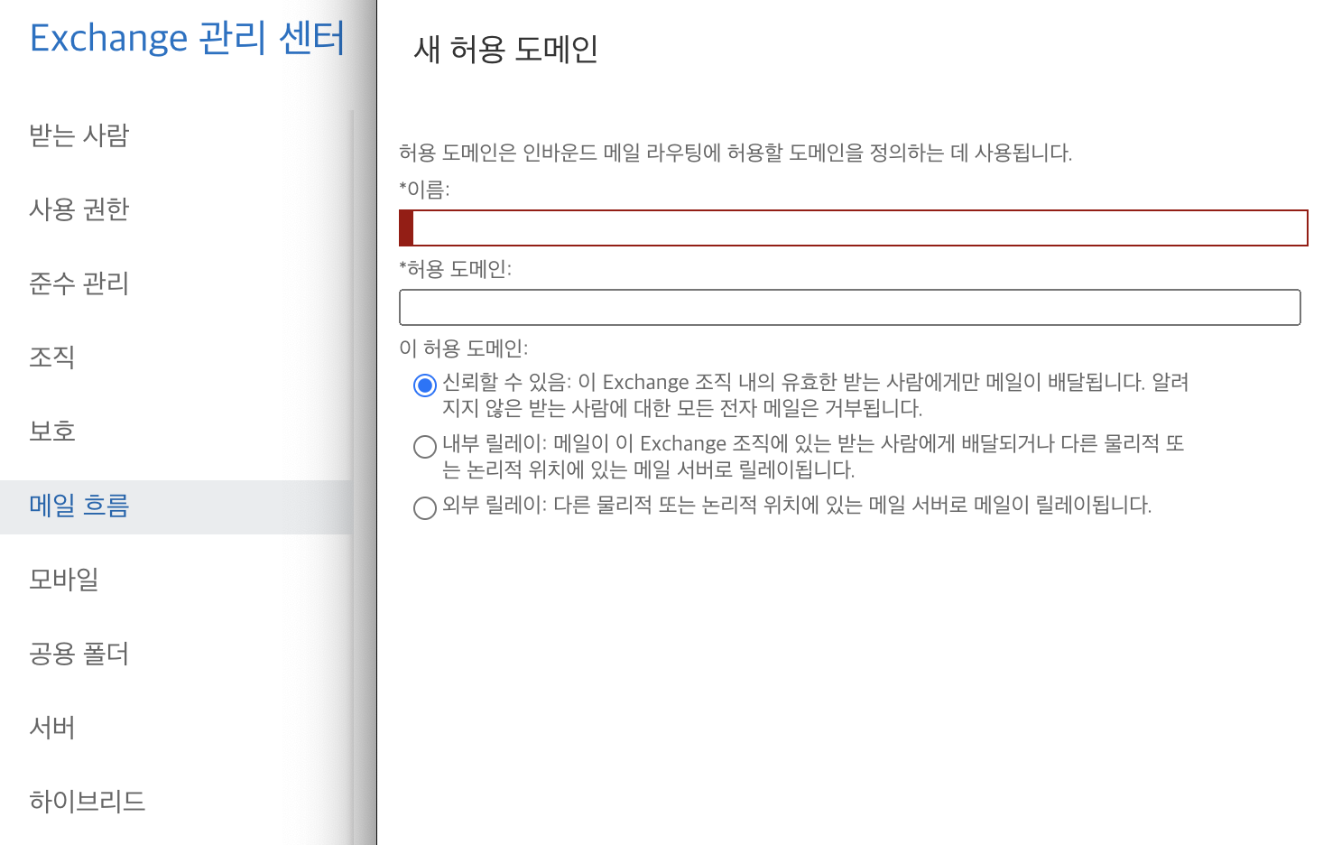 기본 도메인은 원칙적으로 외부 릴레이 선택이 안된다