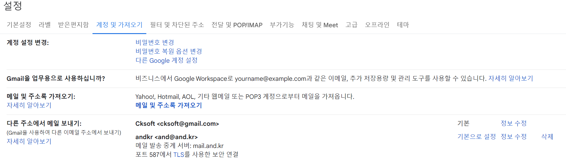 지메일 계정설정 으로 들어가서