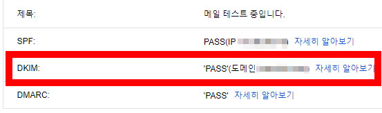 DKIM항목에 "PASS"라고 되어 있으면 모든 설정은 정상입니다.