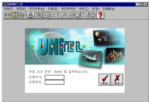 전화선을 연결한 PC통신 유니텔이 기본으로 설치되어 있었다.