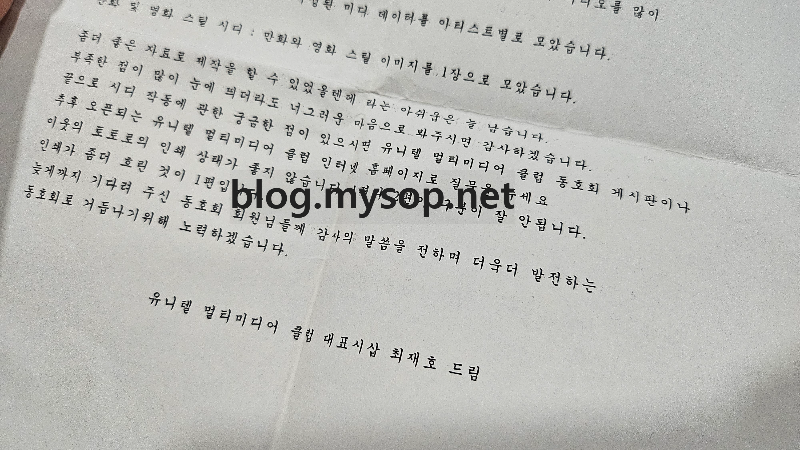 한땀한땀 신경써서 만든 안내문 종이를 26년이 지나도록 보관하고 있는 내가 대단하다.