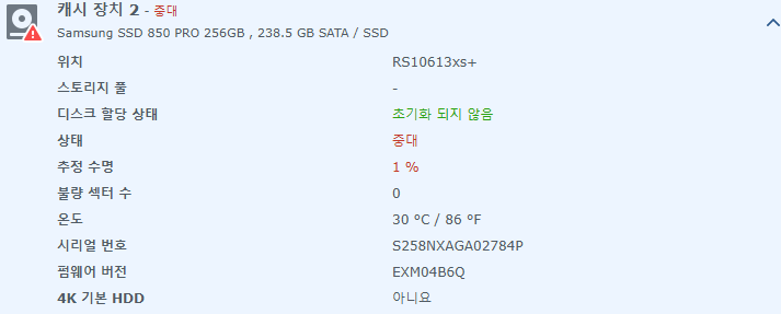 디스크 초기화 되지 않음 상태로 계속 변하지 않습니다.