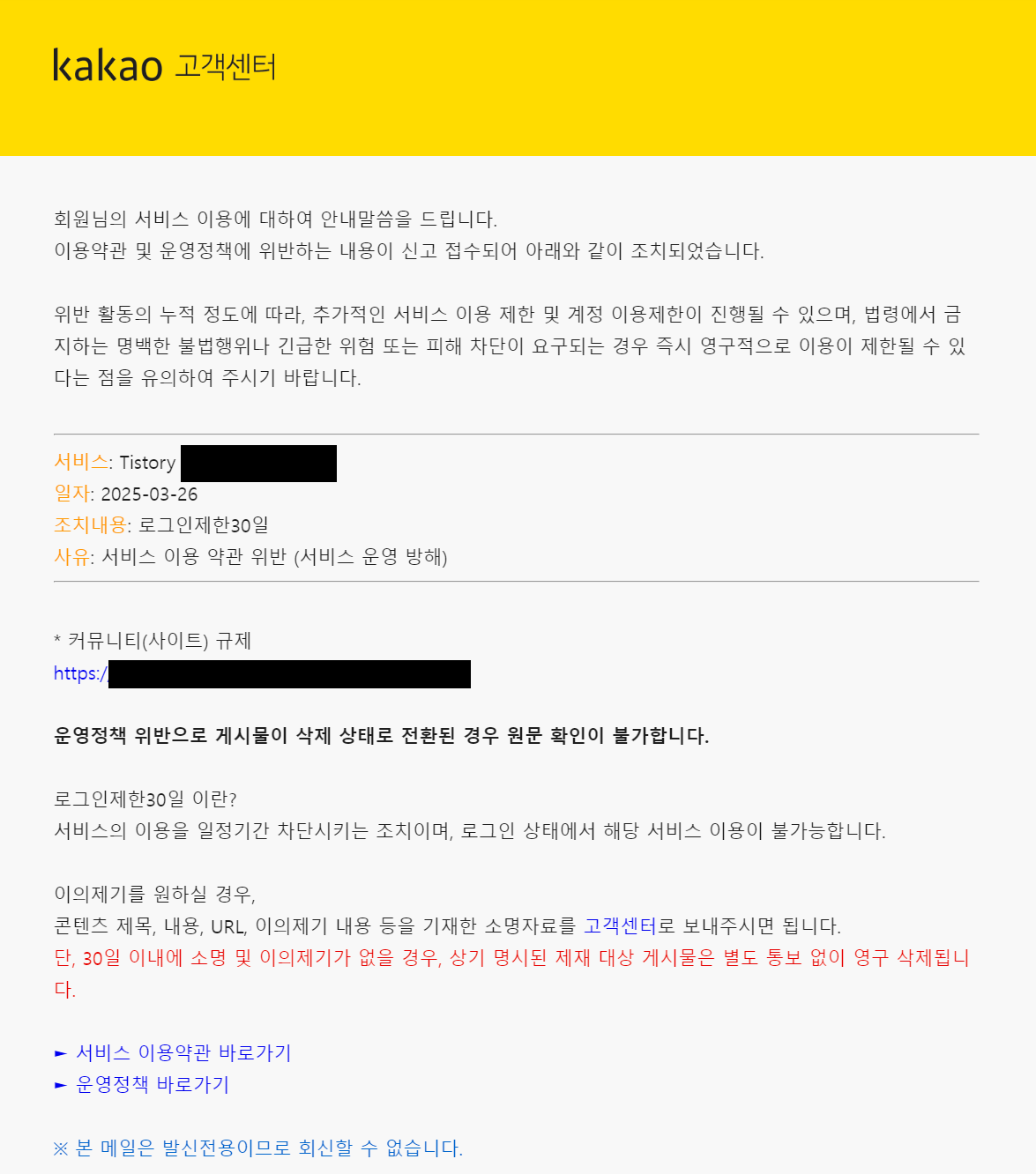 이런 화면이 뜨면서 블로그가 잠기면 일단 당황스럽고 화가납니다.